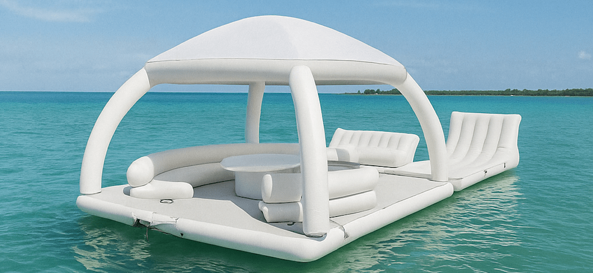 Our luxury inflatables combine refined aesthetics with premium-grade construction, delivering exceptional durability and comfort. Each unit is thoughtfully engineered for long-lasting performance, whether deployed on lakes, seas or land. With modular design for endless customization, you can tailor layouts and finishes to align with your brand and environment.